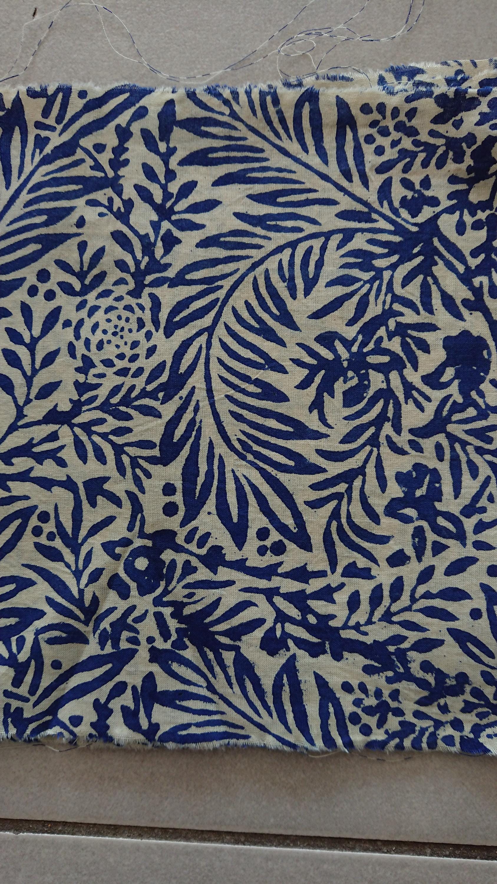 Various base colours are crafted by a resist-dyeing technique where clay paste is left to dry on fabric. Once dried, the fabric is dipped in plant dye solution followed by several cycles of washing and drying. Specific patterns are created using a carved wooden block. Block print 100% cotton kalamkari Fabric FAB247 William Morris in indigo Blue Print floral design fabric can be used to make dresses, tops, tea towels, table cloth, pillow or cushion cover drapery, outdoor beach matt, quilting, sewing, beach dress, bikinis, nightdresses etc.