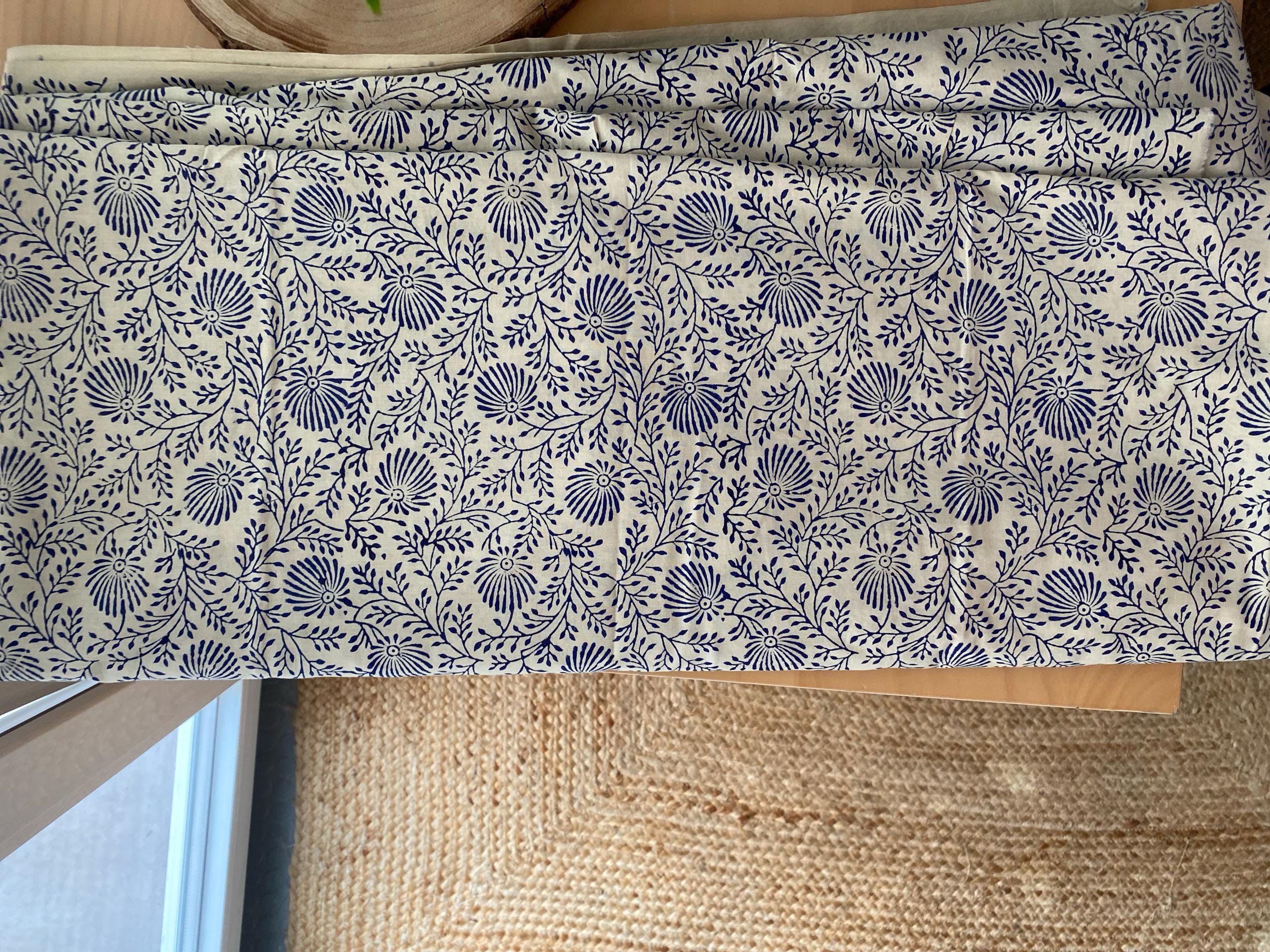 Various base colours are crafted by a resist-dyeing technique where clay paste is left to dry on fabric. Once dried, the fabric is dipped in plant dye solution followed by several cycles of washing and drying. Specific patterns are created using a carved wooden block. This fabric can be used to make dresses, tops, tea towels, table cloth, pillow or cushion cover drapery, outdoor beach matt, quilting, sewing, beach dress, bikinis, nightdresses etc.
